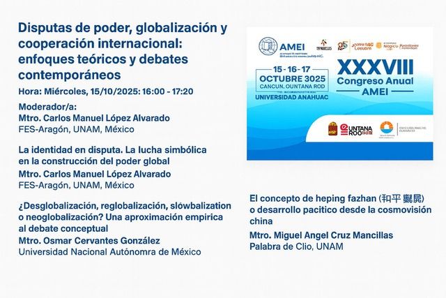Ponencia: "Retos de la seguridad humana en la China de Deng Xiaoping (1978-1990)”. Coloquio Internacional de Primavera en la Facultad de Ciencias Políticas y Sociales (UNAM). Miguel Ángel Cruz Mancillas. Jun.19’25.